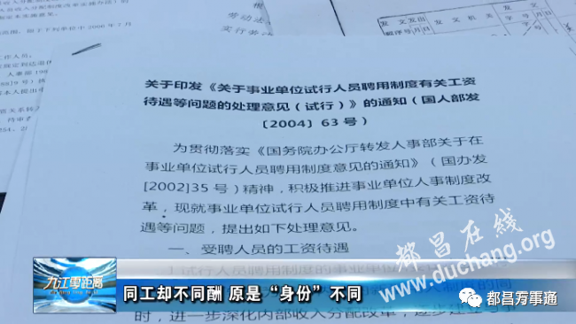 标题: 都昌一女职工:同工却不同酬 原是“身份”不同