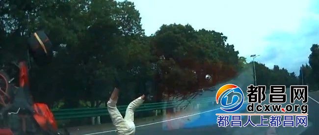 惊险!都昌一摩托车遇上“掉头杀”,幸有安全头盔护驾