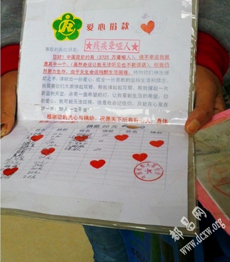 上午去医院看病,刚在放射科门口坐下,一戴眼镜女孩便来到笔者面前,她一声不响,手里捧着一张盖有“中国残疾人联合会”章子的“爱心捐款书”站在你面前,你不拿钱她就不走。用手机拍了张照片后拿了点钱给她,她才 ...