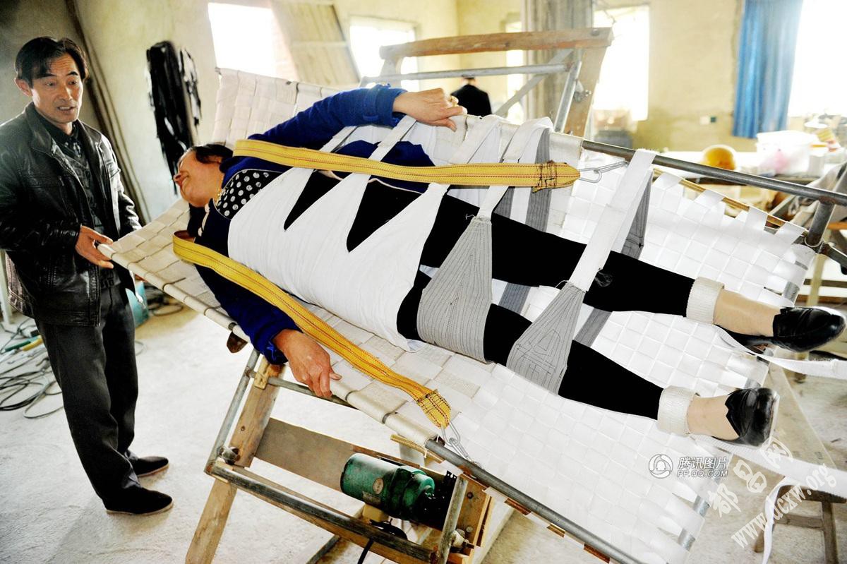 朱清华发明的“排石床”也在专业人士的帮助下,于2014年11月获得了国家专利。图为朱清华发明的“排石床”吸引了慕名而来的群众前来观看。