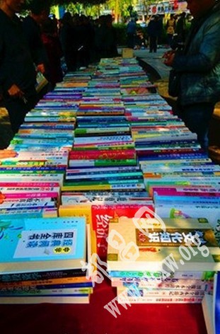 热闹的东街街心花园,又增添了一道亮丽的风景。一个新书摊前围满了挑书看书买书的人。摊主正在忙着称书收钱。一打听,原来这里的书全部以每市斤十五元的价格出售。