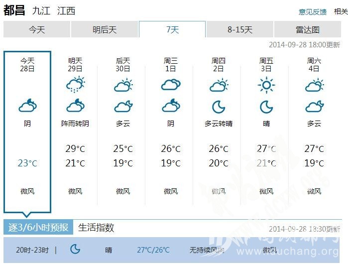 9月28日记者获悉,江西省旅游规划研究院发布高铁开通后江西首个国庆假期旅游预测报告。据预测,国庆期间都昌县以晴好天气为主,偶有小雨,10月4日开始将有明显降温。 气 ...