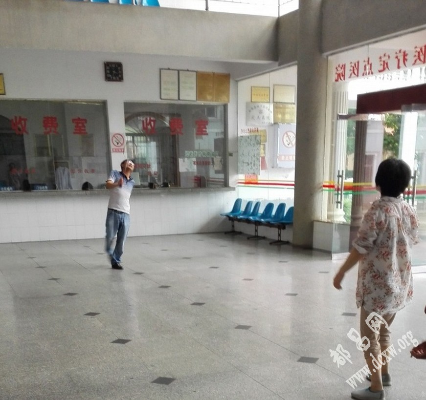 昨天陪朋友姑父去都昌县血防站看病··可当我一进大厅被这一幕给愣住了··在医院大厅里面打羽毛球?我只想知道这样合适么???求解····