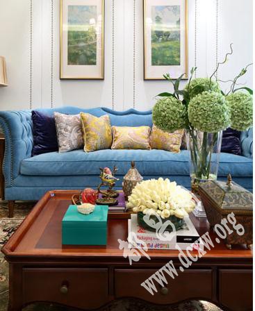 客厅以舒适为主,风格比较混搭。除了霸占视线的蓝色天鹅绒的长沙发和大块的地毯之外,客厅的古典还体现在了一些细节的小玩意儿上:铁皮玩具、复古的储物盒、繁盛的绣球花束……整体比较随意,墙壁和矮茶 ...