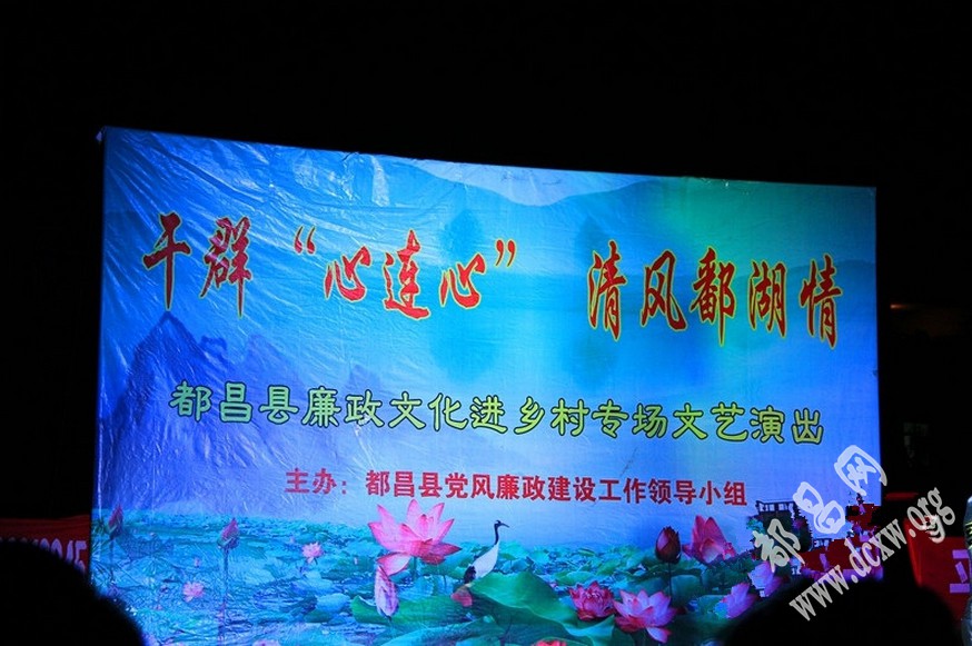由都昌县党风廉政建设工作领导小组主办的“都昌县廉政文化进乡村专场文艺演出”7月17日晚上在东湖广场举行。天下着毛毛细雨,舞台上,歌舞、小品、魔术、鼓书精彩纷呈,引来观众阵阵热烈的掌声。其间 ...
