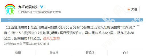 5日上午8点46分,网友“梦想治愈世界”发布微博称,九江市地区半小时前发生地震,“目测3.2级”。5日上午10点,九江市防震减灾局表示,5日上午8点15分发生0.7级地震(疑爆)。网友“梦想治愈世界”称,8月 ...