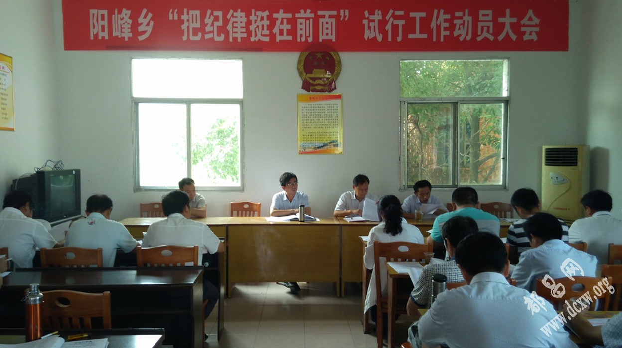 9月10日上午,阳峰乡召开“把纪律挺在前面”试行工作动员大会。乡党政班子全体成员、机关全体干部、各村(居)书记、主任及各单位党组织负责人参加会议,县四家挂点单位领导出席会议。 乡党委书记吴园福同志 ...