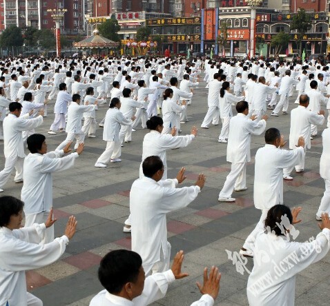 10月18日,太极爱好者在都昌东湖广场表演太极拳。金秋十月,都昌县举行千人太极拳(剑)表演,展现市民的健康风采,推动和倡导全民健身。