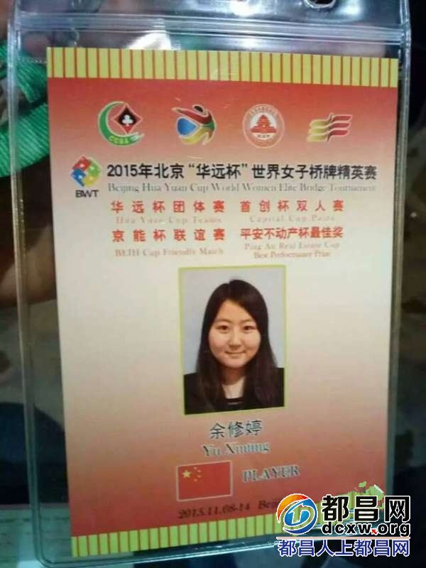 2015年北京“华远杯”世界女子桥牌精英赛将于11月8日至14日在北京园博园丽维赛德酒店举行,都昌籍的余修婷有幸在本次大赛中与众多世界桥牌大师同台竞技、切磋,还将同桥牌大师、国家桥牌青年女队主教 ...