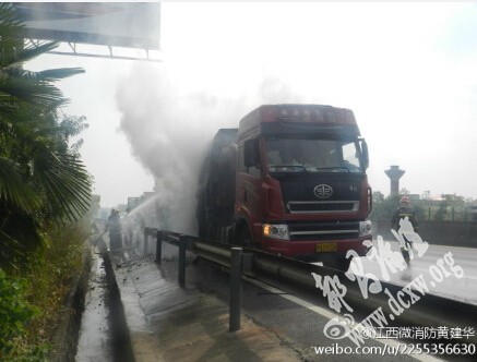 10月22日12时51分,福银高速距九江共青城市高速路口200米处,一辆从深圳开往河南的载有废电池的货车起火,消防员很快将火势控制,并采用搬运、浸透等方法对废电池进行处置。据了解,由于废电池的存放时间过长,摆放 ...