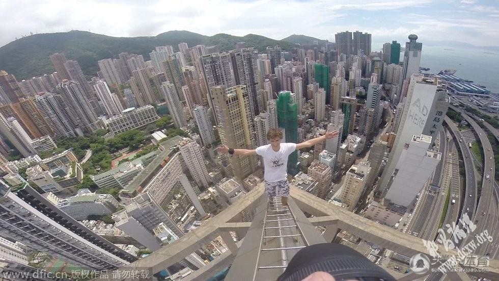 当地时间2014年10月23日报道(具体拍摄时间不详),来自德国慕尼黑的17岁少年Andrej Ciesielski与来自莫斯科的朋友Alexander Remnev “铤而走险”,攀爬香港摩天大楼享受“一览众山小”的快感。Andrej 在没有任何安 ...