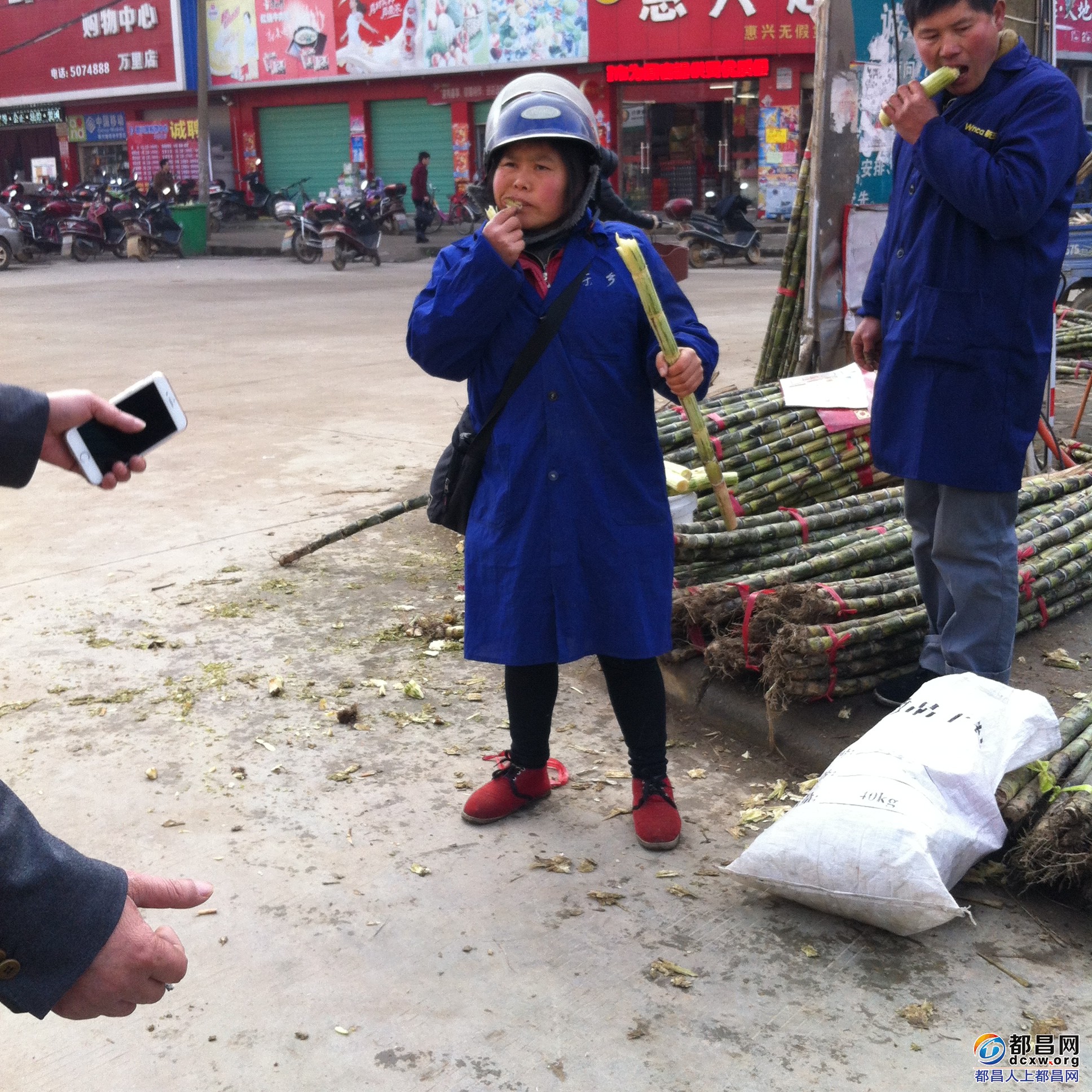 2016年1月15日,甘蔗商贩在万里大道与幸福路交叉处自削自吃甘蔗,甘蔗皮乱扔,垃圾满地。你们吃得不亦乐乎,可是苦了环卫工人。如果是在你家,你会这样吗?都昌是我家,呵护靠大家!