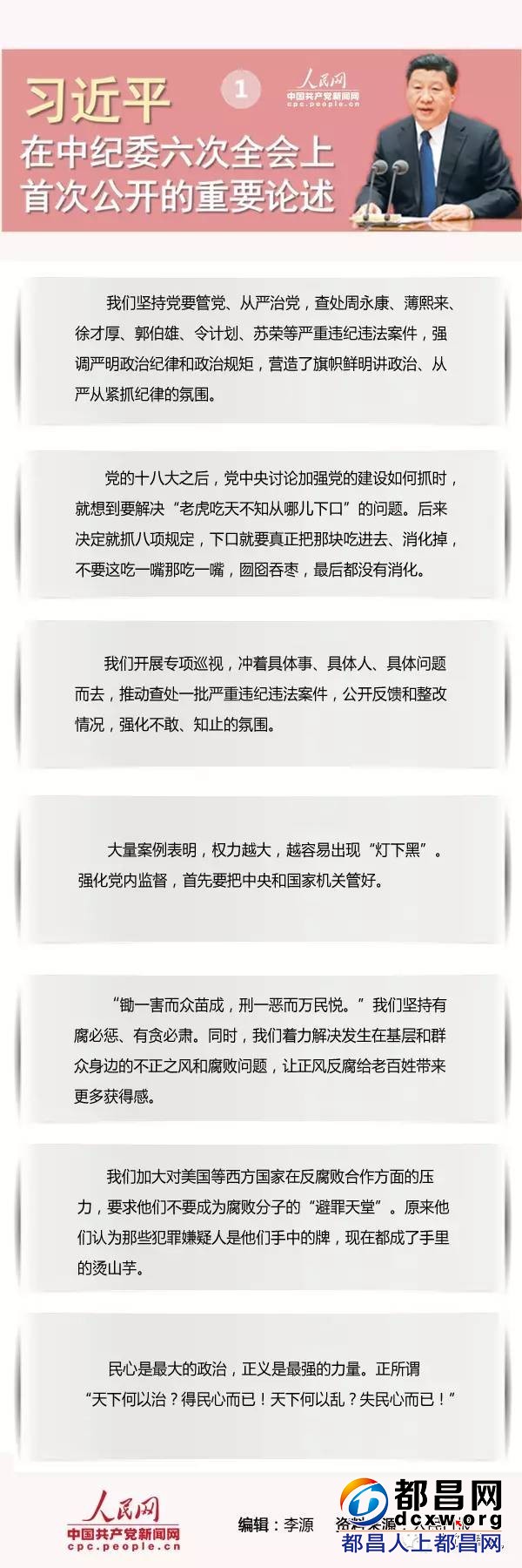 《人民日报》近日发布了习近平总书记在第十八届中央纪律检查委员会第六次全体会议上的讲话全文。总书记从党风廉政建设和反腐败斗争取得新的重大成效、坚定不移推进党风廉政建设和反腐败斗争、坚定不移 ...