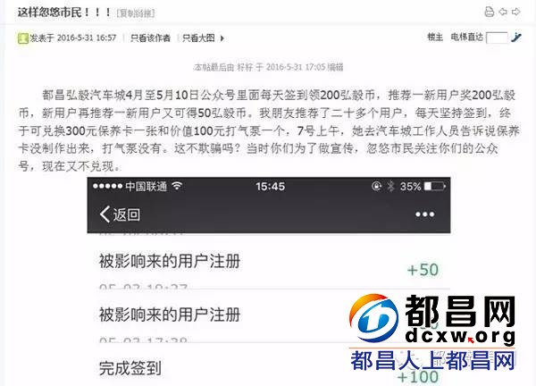 本帖最后由 都昌网友 于 2016-6-15 18:42 编辑 近日,关于“县弘毅汽车城微信营销送礼品忽悠市民”这则帖子受到广泛关注。 [size=14.3999996185303px]据了解,4月22日到5月10日,弘毅汽车城举办了微信营销积 ...