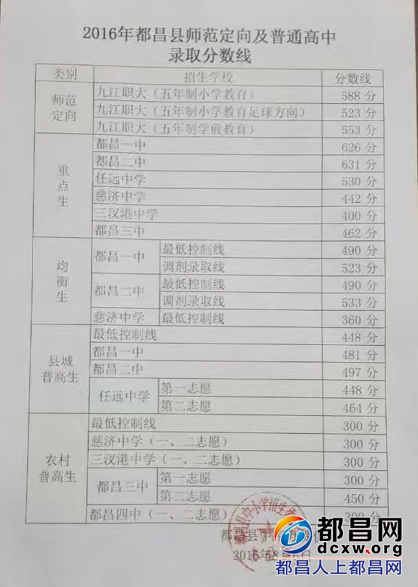 8月6号,从都昌县中招办获悉,2016都昌师范定向及普通高中录取分数线出炉,都昌的学子们围观!