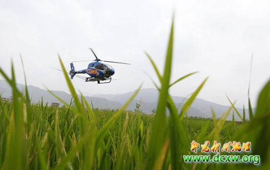 都昌县首次运用直升机进行水稻病虫害药物喷洒作业,这标志着当地农业植保逐步走向专业化、科技化。据了解,直升机航空植保一天可以完成两万亩农作物喷洒,较传统人工喷洒农药更节时、高效。