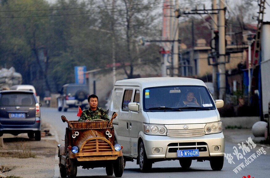 2014年10月29日,辽宁省沈阳市大东区48岁的刘福龙自制了一辆长1.6米,宽1.2米,重量达200多公斤的木质电动轿车。