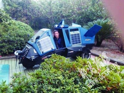 51岁的无锡“牛人”陆新田,最近造了一辆“神车”。车外形看着和飞机相似,车头部有一个螺旋桨,还有一对用太阳能板组成的车翼,驾驶室内没有方向盘,只有2个操纵杆。车上装有4个摄像头,9个雷达,浑身披着太阳能板的外衣。时速最快能达到60公里左右,最远能开60公里。造车用了三年构思,三个月的制作,花了9万元。他要等女儿结婚的时候,把这辆车作为结婚礼物送给女儿。扬子晚报全媒体记者 丁波 ·造车补偿父爱 愧疚老爸要给女儿一个大惊喜 家住无锡锡山区安镇的“神车”主人陆新田昨天告诉记者,自己做这辆车纯粹是为了女儿。女儿现在在国外留学,聚少离多,自己感觉亏欠女儿很多父爱。半年前,得知女儿交男朋友了,陆新田很高兴,就在想自己一定要在女儿大婚的时候,给女儿一个大惊喜,而自己又特别喜欢发明创造,已拥有70多项专利,亲手打造一辆靓车送给女儿的计划得赶紧。等到女儿结婚时,自己带着女儿开着这辆车作为先导车,这是件多么拉风的事情。 这辆车,陆新田融入了歼击机和直升机的设计理念。陆新田是英语老师出身,后来自己开了一个机械小加工厂,从来没有做过汽车方面的研究,这辆车子他研究了300多款国外的绿色环保车,几乎天天晚上都要加班,有时候,为了一个小细节,自己整晚都在研究。 让记者感到惊奇的是,陆先生表示自己这辆车纯粹是靠自己的灵感来完成的,事先并没有任何图纸,从造型到内部设置都是自己边想边做,如果感觉不满意,就立即返工重做,所以制造这车的耗材比较惊人。他印象中,所有的工序没有一道是一次成功的。 ·多少钱都不卖 他要向女儿传递积极向上的精神 陆新田告诉记者,这辆“神车”将成为自己唯一的“限量版”,在女儿的婚礼上送给她。现在这辆车子很少开出去,但是只要他将爱车开出去,绝对成为大家关注的焦点,大家总要来摸一摸,看一看,还有很多人要求试驾一番,过把瘾。他基本上都会满足大家的要求。看过这车的人都对车子赞不绝口,这也让陆新田很有成就感。 此前还有网友联系他,愿意出50万购买他的车,但被一口回绝。陆新田说,现在每天都会接到来电,不少人想买车。让他印象深刻的一次是,曾和一辆保时捷并驾齐驱,对方停下后问车子在哪买的,能否出售,也被他拒绝。 “这辆车肯定不卖,这是留给女儿的,多少钱都不卖。”陆新田说,大家的关注给了他很大的信心,也让他很开心。 之所以再多钱也不卖,一定要传给女儿,陆新田还有他的小心思。他说,他要传递给女儿的不仅仅是一辆神车,更要传给女儿一种创新思维和积极向上的进取精神,“只要坚持,梦想就一定能够实现”。 “神车”解剖 “神车”是用纯铝合金打造,采用的是风力和太阳能发电。车内舱全部是仿造飞机内部构造。 车子的头部装有一个螺旋桨,它是一个风力发电装置。在车子的侧面还有2个风力进气口,利用车子侧面风力大的优势,进行发电。时速达到25公里以上,就能将风力转化为电能,补充消耗。 驾驶改成了类似飞机使用的操作杆。这个操作杆是从网上买来的一种游戏用的操纵杆,陆新田把操纵杆从内部挖空,电路重新改造。驾驶过程中,完成转弯的动作只要两个操控杆推拉操作即可,非常简单。 ●发电装置 车子共有10块太阳能板发电,车的顶部和侧面各有4块,还有2块安装在车翼上,为了充分吸收阳光,这些太阳能板都是可以移动和调整位置的。 ●监控系统 车子顶部和四周装有9个雷达和4个摄像头,驾驶人不出车门,只要看前方仪表盘就可以无死角观察车外情况。 陆新田还在升级改造车子,让车智能起来,前方如有障碍物,车辆会在5米距离逐渐减速,相隔1米时停下。未来,这辆车还可以用电脑操控,实现半自动化驾驶。 ●仪表盘 座舱前部的操纵盘上有6块液晶显示屏,包含导航、360度全景仪、车载仪表盘、行车电脑、雷达反馈仪等,全部是陆新田从外边买来后再组装的。 ●座椅 座椅采用赛车配置,是最安全的4扣安全带,坐在其中,不觉拥挤非常舒服。还带立体声音响,就安放在座椅的两边,正好靠近耳朵。陆新田说,这样的音效绝对震撼。 ·那么问题来了 “神车”能否上牌上路? 有个不得不考虑的问题是,“神车”能上牌上路开吗?昨日,无锡市公安交巡警支队法宣科的一位负责人了解了“神车”情况后告诉记者,这辆车按照国家规定的机动车上牌政策,是肯定不符合规定的,不能上牌上路。 如此一来,大婚引导车的重任,“神车”可能难以担当了。不过陆新田似乎并不担心,他觉得最主要的是女儿喜欢,并能领悟自己的苦心。事实上,女儿对这个惊喜已经提前知晓。看到车的照片,女儿开心得不得了。 曾引爆眼球的各路“神车” 靖江:自制车时速60公里 靖江市的陈先生自制了一辆太阳能汽车,与普通轿车大小相似,车顶覆盖着太阳能板,最高时速60公里,蓄满电能跑250公里。去年3月26日上路时,被交警拦下罚了200元。 点评:这还真是辆像样的太阳能小轿车,问题是牌照什么时候能解决了? 沈阳:太阳能“房车”去旅行 2009年,来自沈阳的65岁李林祥和61岁的赵雅范骑着自制的太阳能“房车”用3年走遍全国,还去过东南亚6个国家。该车车顶上的太阳能光伏板组件,为“房车”提供所需电能。 点评:这外形寒碜了点,不过好歹沾了高科技的边,有创意。 文山:牛人自制太阳能代步车 去年2月底,云南文山人秦聪文设计制造的“太阳能代步车”进