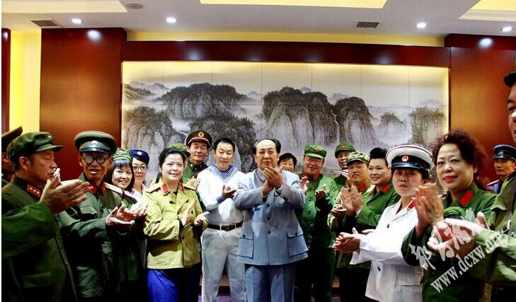 11月1日,山西省太原市,30多名中老年军迷爱好者自发组织爱国主义教育学习活动,他们有的是退伍军人,有的是军迷,他们身穿各个时期的军服,唱军歌,行军礼,忆军旅岁月。毛泽东的特型演员任震龙 ...