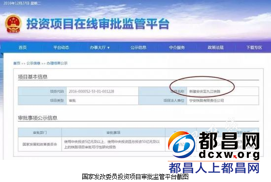 从国家发改委员投资项目审批监管平台获悉,安庆至九江铁路昨日(12月26日)正式获得发改委批复,审批文号为:发改基础[2016]2716号。 安庆至九江铁路起于安徽省安庆市,经安徽怀宁、潜山、太湖、宿松和湖北黄 ...