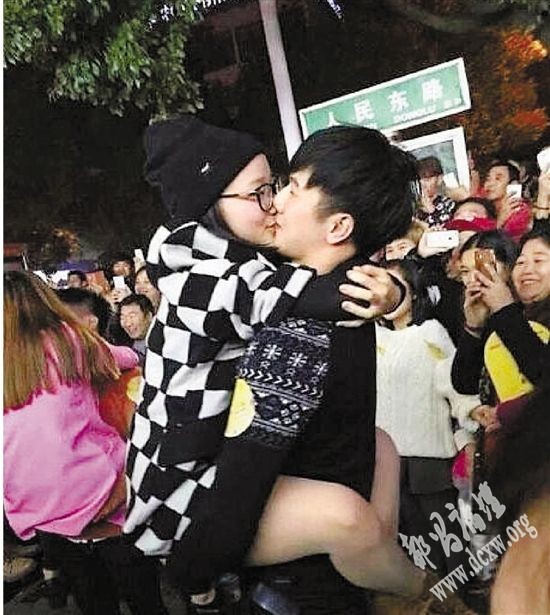 11月11日晚上,金华浦江人民路上某商家举办了一场接吻大赛,超级热闹,围观的人无处落脚,有的直接上树了。 不过,十几对情侣吻得正投入,城管来了。 吻了30多分钟,说停就停,选手不乐意;胜负未分,看得面酣耳热的围观者们,也有点扫兴;主办者说精心筹划一个多月,钻戒大奖都没决出就停了,也有些小郁闷。 总之,大伙儿很失望嘛。 围观者很扫兴: 还没分胜负就停了 11月11日晚上近8点,网友给博主“浦江新闻趣事”发了图片,“浦江也举办接吻大赛啦,有意思啊”。 图片中情侣们、闺蜜们吻得很热烈,旁边观战的市民围得里三层外三层。 “啊哟,估计小半个浦江县城人都来了,‘小浦江’也时尚起来啦。”有网友留言表示。 博主“浦江新闻趣事”直播现场。 8点半左右,刷屏的博主说:“城管来啦,活动结束。” “好可惜啊,城管叔叔为什么要来管这事儿啊?”有网友抱怨,还没决出胜负呐。 选手也不情愿: 已吻了30多分钟,说停就停了 “我们吻着吻着就被提醒说活动结束了。”参加活动的张女士笑着说,大概在30多分钟时,有人轻轻在旁边提醒,“说这个活动结束了,我和老公一看,是城管,就只能分开来。” 因为下个月要举办婚礼,怕婚礼上朋友们闹,所以提前来做个练习。张女士说,“还没决出胜负呢,我要看看我老公持久力究竟有多少。” 她说,昨天接到商家电话,周六可能要继续比赛,“如果我们有空,还是要去的。” 活动主办者有点小郁闷: 正考虑周六是否继续,钻戒大奖还没主呢 活动主办方,是浦江一家新开的珠宝店。说起这事,老板娘楼小姐也是有点小失望。 “我们筹划了一个多月,还打广告,大奖是一对钻戒呢。”楼小姐说,“一开始有30多对报名,后来现场来了10几对,具体我也没数,因为现场人实在太多了,围得水泄不通。” 不过她也说:“比赛举办了一会儿,我也发现很多人爬到树上看,马路也被堵住了,有点危险,我当时也担心活动会出意外。” 近40分钟时,城管就来了,“他们和我沟通,说人太多影响交通,让我停掉。” 楼小姐虽然有点失望,但看着现场,也只能配合城管一起结束了这个活动。“主要还没决出胜负,我刚才正在通知,看看他们是不是周六愿意来店内继续比赛。”楼小姐很认真地说。 城管其实没错: 有围观者上树,路牌也给踩翻,太乱啦 为啥城管叔叔要终止活动呢? 看看这个举办地点,是浦江县主干道人民路,门口车水马龙。双十一晚上路面上站满人,还把摩托车啊、电瓶车、自行车横七竖八停在路边,结果就堵车了。 “我们巡逻的时候,发现路面都堵住了,而且还有人爬到树上去。”当晚执勤的浦江县行政执法局一名工作人员告诉钱江晚报记者,他也觉得这个活动让浦江时尚了很多,和很多大城市一样具有时尚感。“可是,现场人挤得太多了,加上爬树、堵住路面,踢倒垃圾桶,实在不大好。” 他说,职业操守告诉他,还是要劝导主办方停止。 “我们也是第一次劝导这样的活动,挺不好意思的。”这名工作人员说,还好商家挺配合,“大概40多分钟的时候,活动结束了,大家都还蛮配合。” 看吧,城管叔叔这么做也没错。记者问城管,主办方办这个活动是不是要去执法大队审批?这名工作人员说,这个路段是最繁华的路段,肯定批不下来。 |
