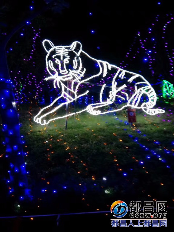 鄱阳湖畔都昌县首届东湖游乐园夜空中灯光节璀璨夺目,梦幻世界,灯的世界。