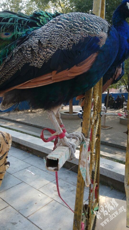 今天新世纪来了一批来自河南的艺术团,他们用动物们提供游客们拍照,譬如:老虎、孔雀、等等作为背景。其中老虎是假的,孔雀的脚被束缚着。游客们拍照立即冲洗做成相框:小的 ...