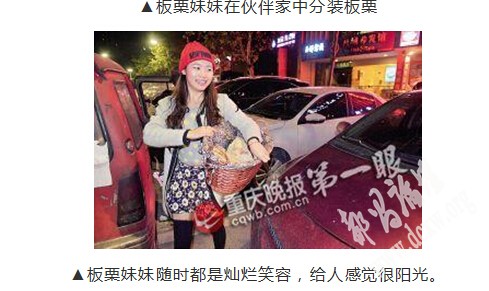 板栗妹妹给客人推销板栗一般只问三次,三次后不买说声“打搅了”离去 她今年21岁,有着这个年纪的青春靓丽。每天晚上,她都会出现在冉家坝、大石坝、观音桥等喝夜啤酒的地方,手上挎个装满热板栗的花篮子 ...