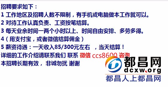 一、待遇: 薪 酬:日薪制,薪资待遇3000-5000元/月 工资每天晚上10点准时结算; 二、要求: 1、男女不限; 2、有电脑或智能手机; 3、每天有2-3小时上网时间; 4、语言沟通能力强; 5、服从公司安排,维 ...