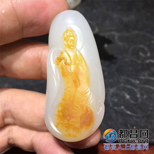 新疆和田玉籽料 观音 国家级大师张克山亲工作品,玉质细腻过灯金皮巧色雕刻,双证书收藏,重31.5克54/34/14 喜欢的朋友vx271002931、